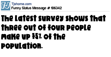 - # 45397 Latest survey's shows that 3 out of 4 people make up 75% of the world's population
