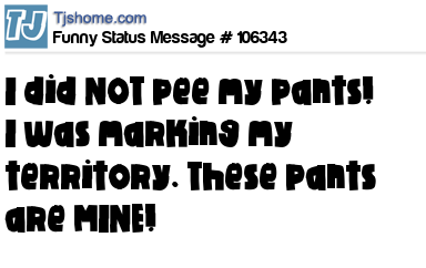 X says I did NOT pee my pants! I was marking my territory. These pants are MINE!