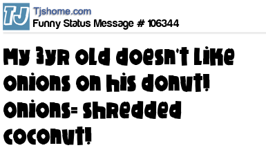 X is My 3yr old doesn't like onions on his donut! Onions= shredded coconut!