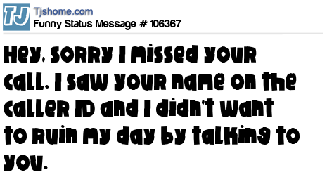 X is Hey, sorry I missed your call. I saw your name on the caller ID and I didn't want to ruin my day by talking to you.