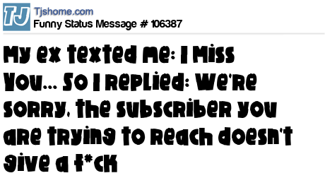 X says My ex texted me: I Miss You... So I replied: We're sorry, the subscriber you are trying to reach doesn't give a f*ck