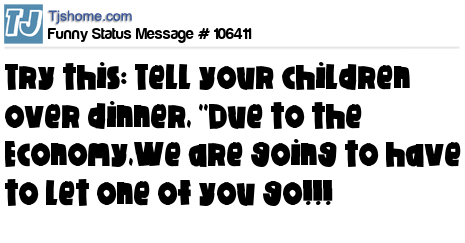 - # 4215 Tell your children over dinner, "Due to the economy, we are going to have to let one of you go.