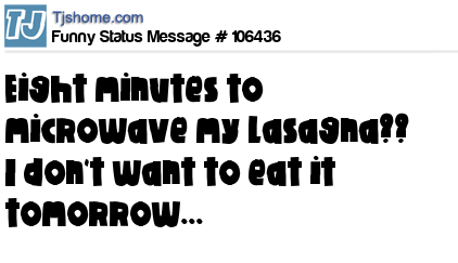 X says Eight minutes to microwave my lasagna?? I don't want to eat it tomorrow...