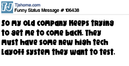 X says So my old company keeps trying to get me to come back. They must have some new high tech layoff system they want to test.