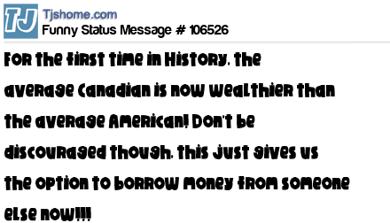 X is For the first time in History, the average Canadian is now wealthier than the average American! Don't be discouraged though, this just gives us the option to borrow money from someone else now!!!