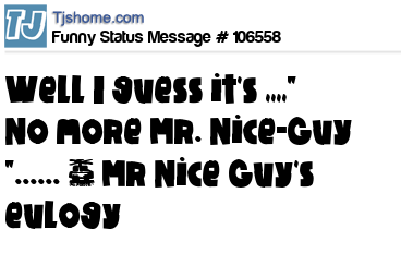 - # 174671 "No more Mr. Nice Guy" ~ Mr. Nice Guy's eulogy
