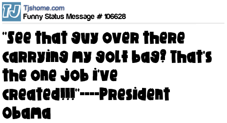X is ''See that guy over there carrying my golf bag? That's the one job i've created!!!''----President Obama