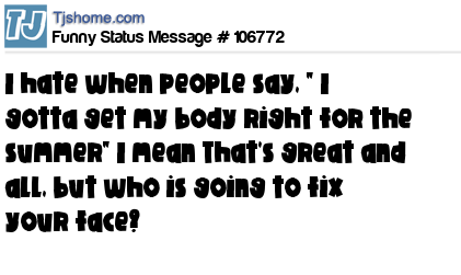 - # 51393 I hate when people say, "I gotta get my body right for the summer." ...like, wtf are you going to do about your face???