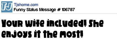 - # 141155 My favorite part of Thanksgiving day is when I stuff the Bird. My wife enjoys it too but wishes I'd find another nickname for her lady parts.