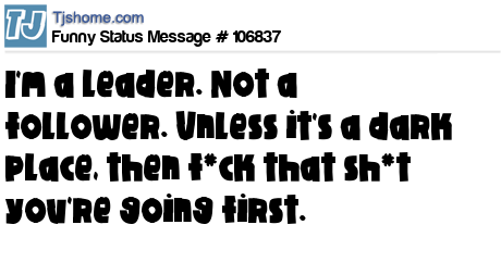 - # 80496 I'm a leader, not a follower.. Unless it's a dark place, then screw it, you're going first!