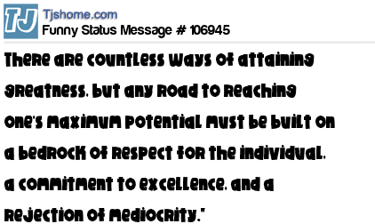 X says There are countless ways of attaining greatness, but any road to reaching one's maximum potential must be built on a bedrock of respect for the individual, a commitment to excellence, and a rejection of mediocrity."