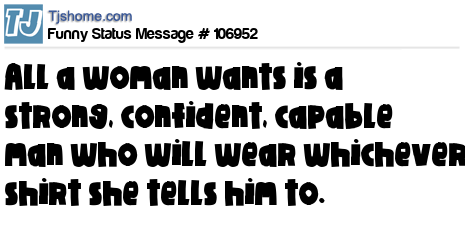 X says All a woman wants is a strong, confident, capable man who will wear whichever shirt she tells him to.