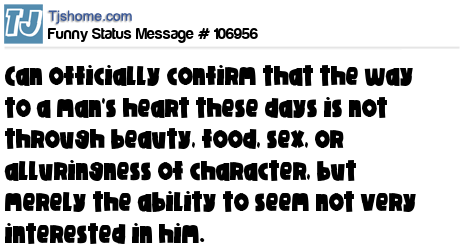 X is Can officially confirm that the way to a man's heart these days is not through beauty, food, sex, or alluringness of character, but merely the ability to seem not very interested in him.