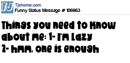 X says Things you need to know about me: 1- I'm lazy 2- hmm, one is enough