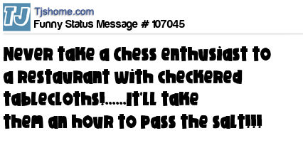 - # 13319 ..i had lunch with a chess player today. It took him 20 minutes to pass the salt.