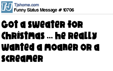 X got a sweater for Christmas ... he really wanted a moaner or a screamer