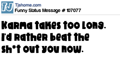 - # 93814 Sometimes Karma takes way too long. I would rather beat the crap out of you NOW!