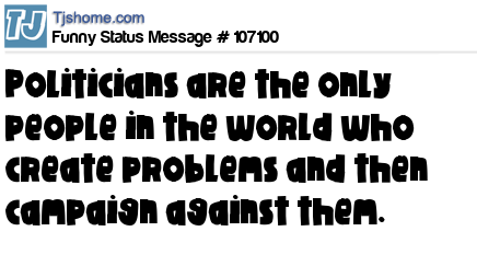 X Politicians are the only people in the world who create problems and then campaign against them.