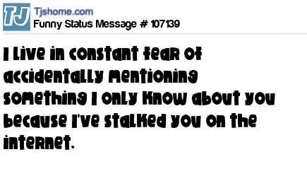 X is I live in constant fear of accidentally mentioning something I only know about you because I've stalked you on the internet.