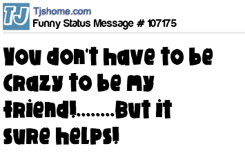 - # 3313 thinks you should know that you don't HAVE to be crazy to be my friend...but it helps!!