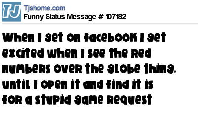 - # 102525 when I get on facebook I get excited when I see the red numbrs over the globe thing until I open it and find it is for a stupid game request.