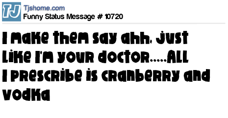 X I make them say ahh, just like I'm your doctor.....All I prescribe is cranberry and vodka