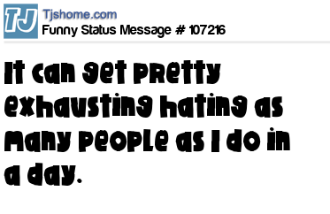 X says It can get pretty exhausting hating as many people as I do in a day.