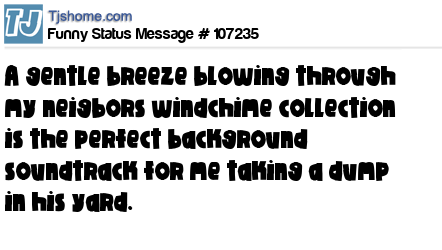 X A gentle breeze blowing through my neigbors windchime collection is the perfect background soundtrack for me taking a dump in his yard.