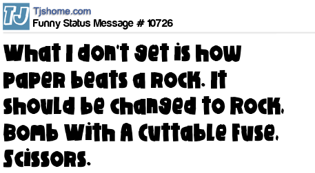 X What I don't get is how paper beats a rock. It should be changed to Rock, Bomb With A Cuttable Fuse, Scissors.