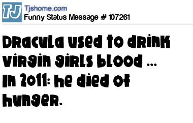 - # 83215 In 1911, Dracula fed himself 16 year old virgin girls' blood. He died of hunger in 2011.