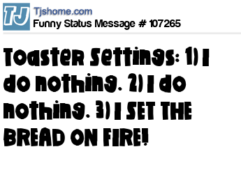 - # 197302 My husband annoyed me last night so I adjusted the toaster settings slightly this morning.