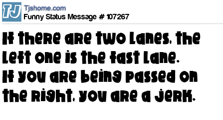 X is If there are two lanes, the left one is the fast lane. If you are being passed on the right, you are a jerk.