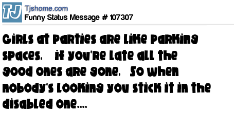 - # 61330 honestly believes girls are like parking spaces...good ones are already taken! and the ones left over are handicapped
