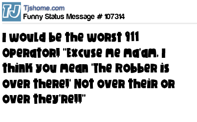 X is I would be the worst 911 Operator! ''Excuse me ma'am, I think you mean 'The Robber is over there!' Not over their or over they're!!''