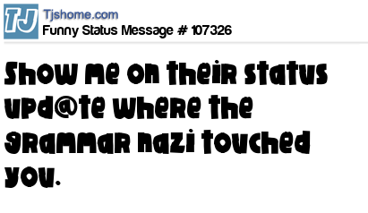 X says Show me on their status upd@te where the grammar nazi touched you.