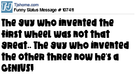 - # 33910 The guy who invented the first wheel was an idiot. The guy who invented the other three, he was the genius. ;)