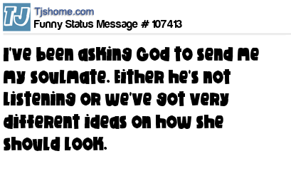 X says I've been asking God to send me my soulmate. Either he's not listening or we've got very different ideas on how she should look.