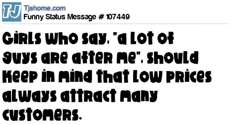 X is Girls who say, "a lot of guys are after me", should keep in mind that low prices always attract many customers.