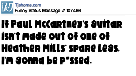 X If Paul McCartney's guitar isn't made out of one of Heather Mills' spare legs, I'm gonna be p*ssed.