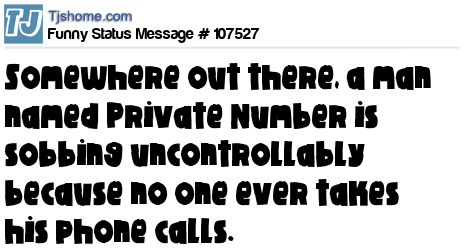 X Somewhere out there, a man named Private Number is sobbing uncontrollably because no one ever takes his phone calls.