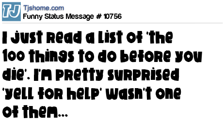 - # 8361 ust read a list of 'the 100 things to do before you die'. I'm pretty surprised 'yell for help' wasn't one of them.