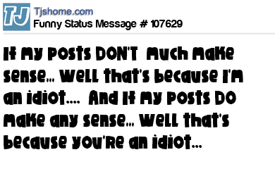 X If my posts DON'T much make sense,,, Well that's because I'm an idiot.... And If my posts DO make any sense,,, Well that's because you're an idiot...