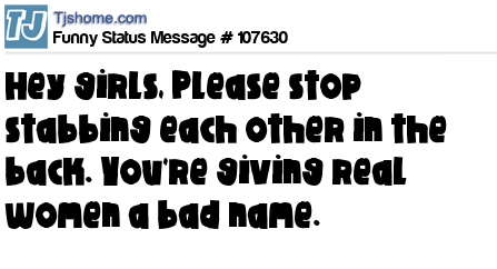 X is Hey girls, Please stop stabbing each other in the back. You're giving real women a bad name.