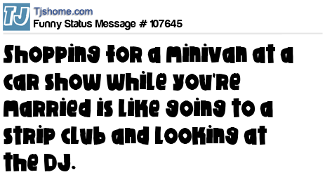 X Shopping for a minivan at a car show while you're married is like going to a strip club and looking at the DJ.