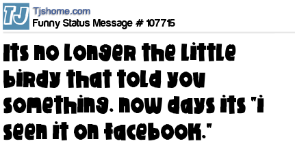 X says its no longer the little birdy that told you something. now days its "i seen it on facebook."
