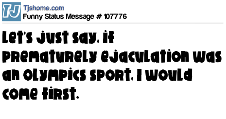 X says Let's just say, if prematurely ejaculation was an Olympics sport, I would come first.
