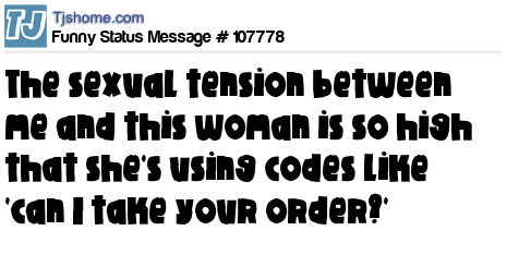 X says The sexual tension between me and this woman is so high that she's using codes like 'can I take your order?'