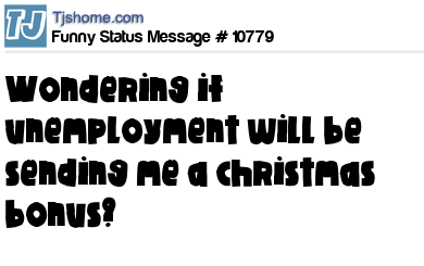 - # 173103 Wonder if Unemployment will be sending me a Christmas bonus this year.