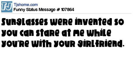 X is Sunglasses were invented so you can stare at me while you're with your girlfriend.