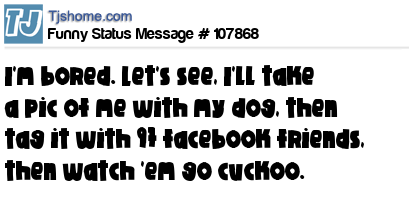 X I'm bored. Let's see, I'll take a pic of me with my dog, then tag it with 97 facebook friends, then watch 'em go cuckoo.